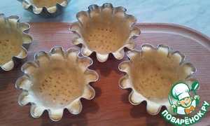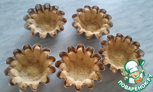 Наши корзиночки готовы. Когда они полностью остынут, достаточно чуть пристукнуть формочку о стол и они прекрасно ее покинут. А пока идет процесс остывания, готовим начинку.
