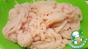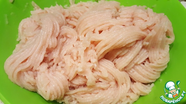 Прокрутить филе грудки в мясорубке с мелкой сеткой.