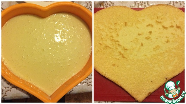 (я маслом не смазывала, т. к форма силиконовая, и коржи немного прилипали)