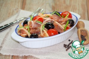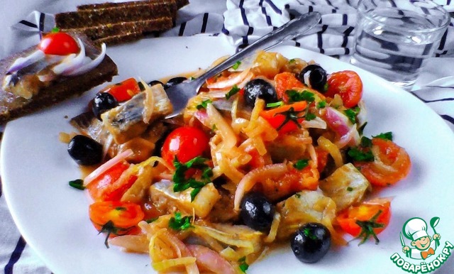 Рецепт «Маринованная сельдь с луком и маслинами»:
