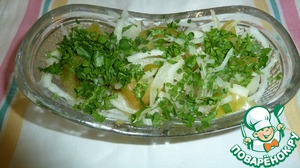 Всё перемешать и украсить по-простому-порезанной зеленью.
