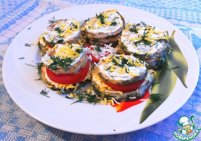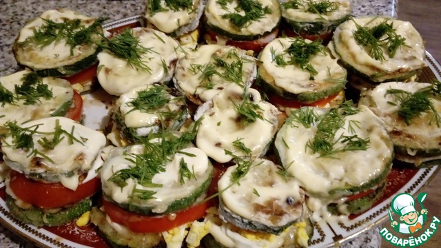 Рецепт «Закуска из кабачков с яйцом и помидором»: