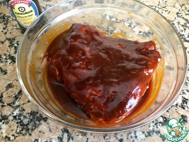 3. Накрыть мясо плёнкой и убрать в холодильник на ночь.