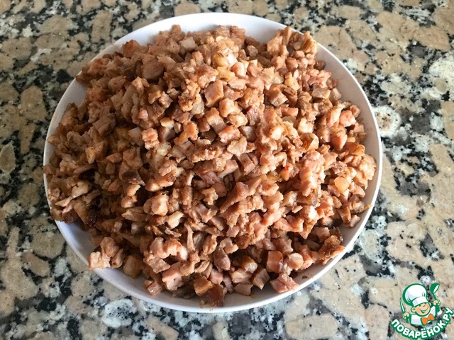 5. Мясо остудить и нарезать тонкими пластами. Мясо, приготовленное таким образом, получается нежнейшим, ароматным и сочным и само по себе станет замечательным блюдом для праздничного стола. На данное количество теста требуется лишь половина приготовленного мяса. Оставшуюся часть вы можете сохранить для другого рецепта или заморозить.