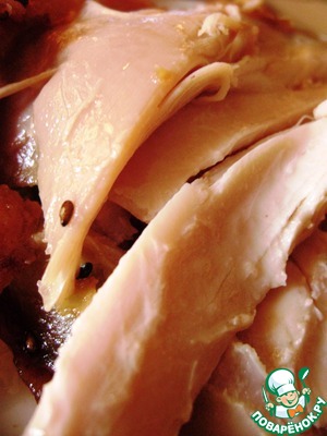 А корочка - румяной и очень хрустящей. Причем хрусткость сохраняется даже у остывшей птицы.