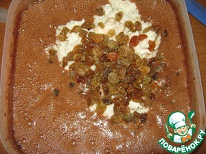 Изюм замочить. Шоколад и сливочное масло растопить на водяной бане.