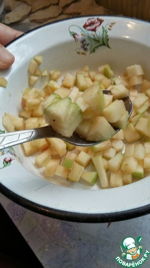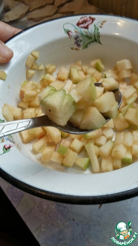 Яблоки мелко нарезаем. Сахар смешиваем с корицей.