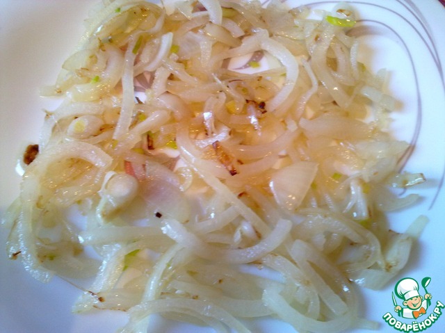 Обжаренный лук выкладываем на блюдо.