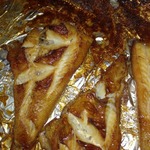 Выкладываем рыбу на противень застеленный фольгой (предварительно смазываем фольгу подсолнечным маслом).