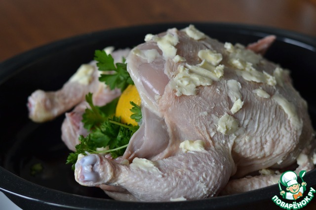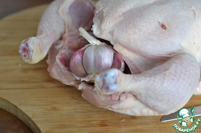 Рецепт «Курица, фаршированная чесноком и лимоном»: