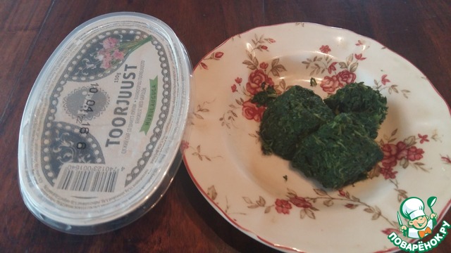 Рыбу, креветки и шпинат разморозить. Каким-то таинственным образом фотографии рыбы и креветок исчезли, но все и так знают, как они выглядят. А это уже размороженный шпинат и свежий сыр.