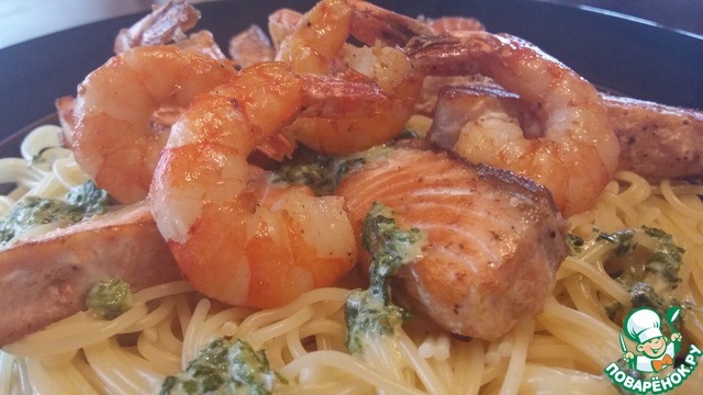 Рецепт «Спагетти с лососем в сливочно-шпинатном соусе»: