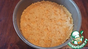 • Сливочное масло растопить и смешать с печеньем до состояния "мокрого песка". Выложить его на дно формы и утрамбовать.