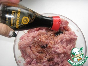 Фарши соединить и заправить соевым соусом ТМ"Киккоман" (70 мл)