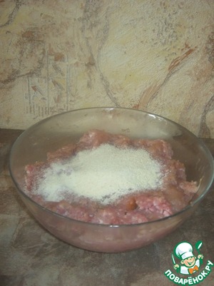 Добавить к фаршу яйцо и манную крупу, хорошо перемешать