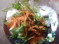 Добавляем специи и нарезанный укроп. Перемешиваем полученную смесь |