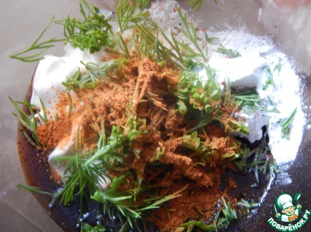 - Специи (специи для рыбы+имбирь+лимонный перец) — 6 г