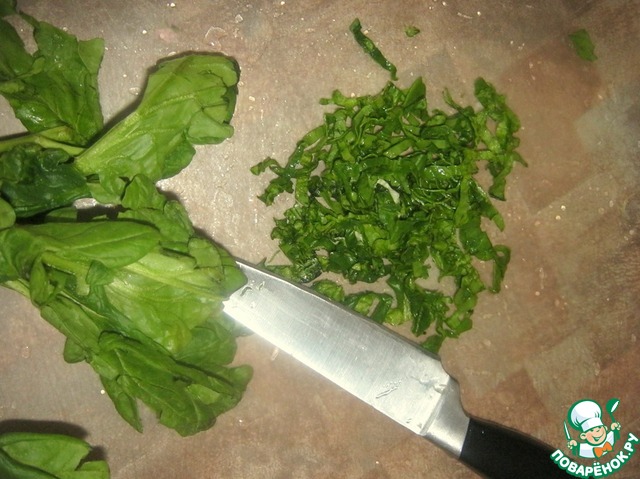 Мелко накрошить шпинат
