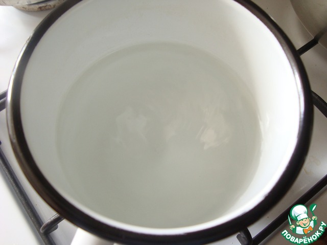 Варим яйцо-пашот. Я всегда яйцо аккуратно разбиваю в чашку. Так удобней его потом помещать в кипяток. Ставим воду на плиту, солим и наливаем уксус.