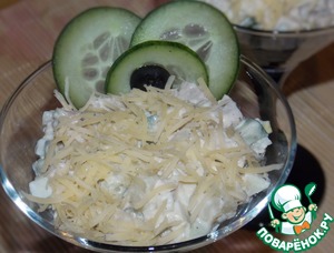 Выложить салат в порционные тарелки. Сверху посыпать сыром.