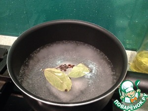 • А пока мы разделываем рыбку, на плите у нас уже готовится маринад. Все ингредиенты указаны на 1 литр воды. Не забываем, что уксус вливаем в последний момент, когда вода уже закипит.