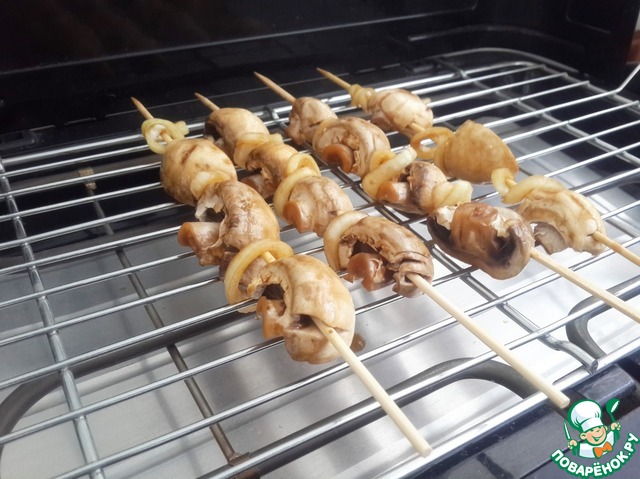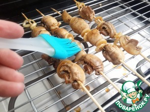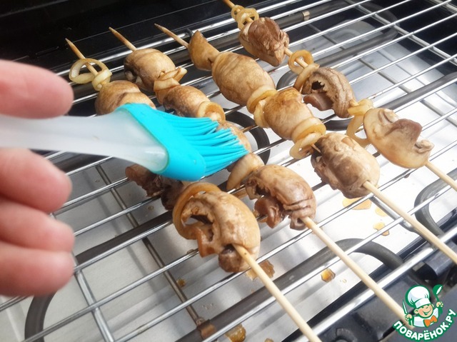 • При желании, смазать грибочки соусом, в котором они мариновались