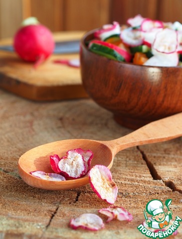 Чипсы из редиса, внешне похожие на лепестки роз-это необычные постные снэки, которые хороши как сами по себе, так и в качестве пикантного дополнения к лёгкому овощному салату.