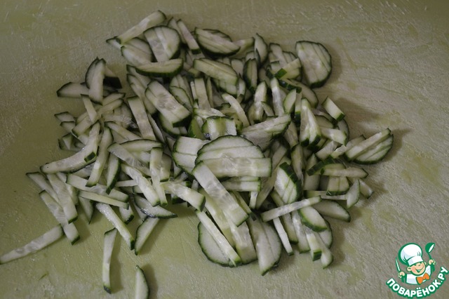 Огурец нарезать соломкой.