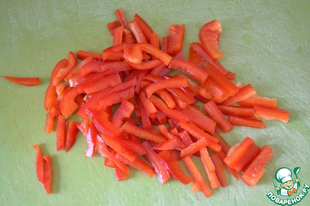 Перец нарезать соломкой.