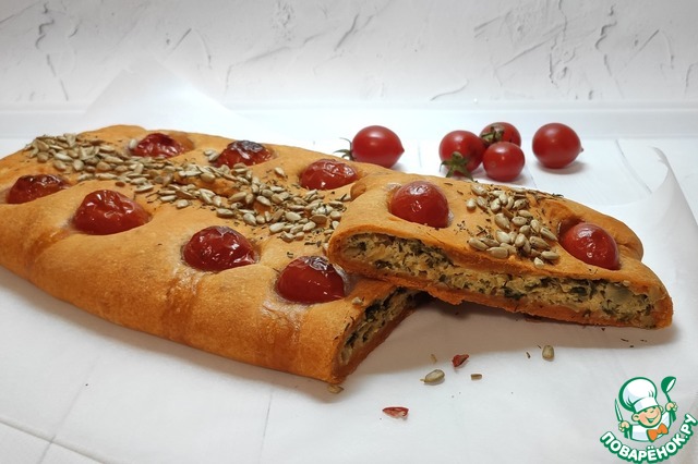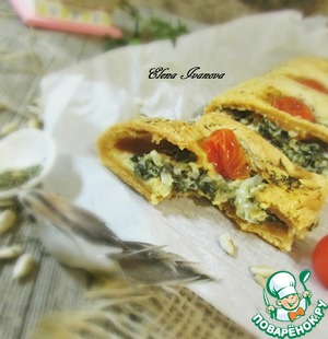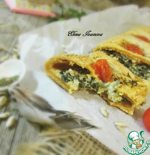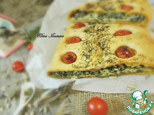 Но у меня вариант попроще,творог со шпинатом,а в дырочки выкладываю варёные яйца.Такой пирог здесь называют пасхальным пирогом.