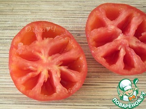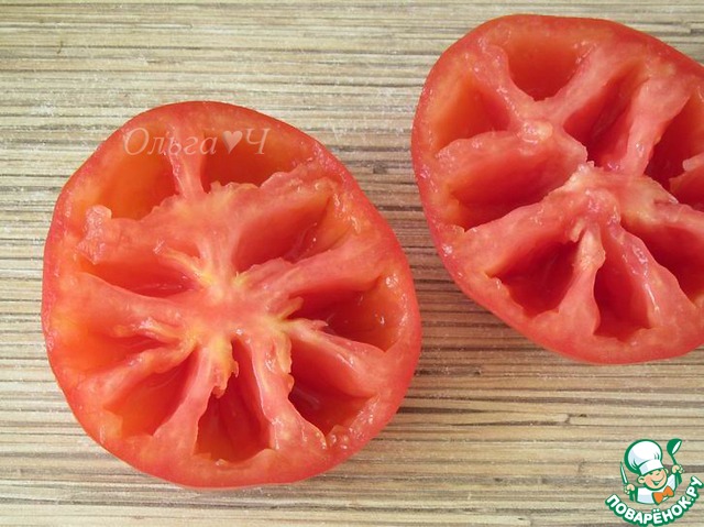 Помидоры разрезать пополам, удалить семена,