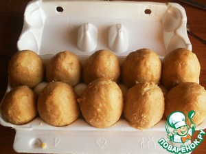 Я лепила шарики, потом придавала им форму яйца и ставила в лоток из-под яиц. -
