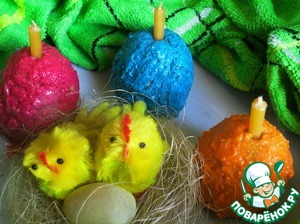 Через час достаем "тесто" и лепим шарики-яйца. В принципе, форма свечек может быть любой. Но поскольку готовимся к Пасхе, то форма яйца очень уместна.