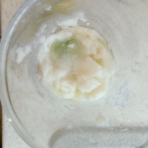 Теперь остывшую кашу перекладываем в чашу блендера, добавляем васаби (можно заменить обычной горчицей, если нет васаби), соль, сахар, лимонный сок, если хотите, черный перец и начинаем потихоньку взбивать добавляя по столовой ложке растительное масло.