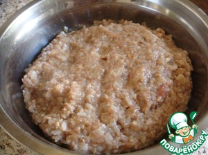 Хорошенько вымешать и поставить фарш в холодильник на 1 час, чтобы он настоялся и стал более податливый в работе.