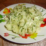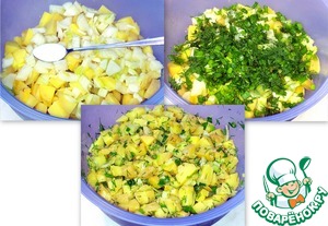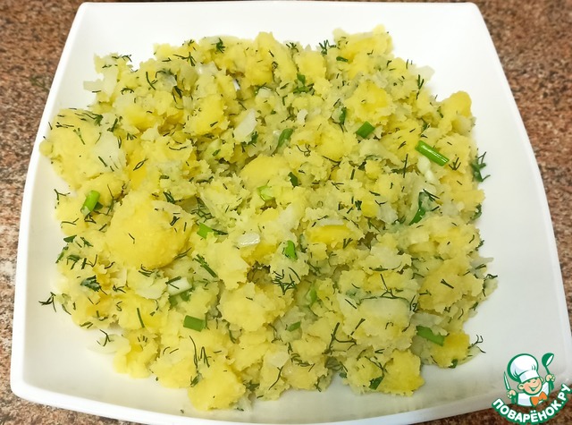 - Картофель (варенный в мундире, очищенный) — 1100 г