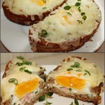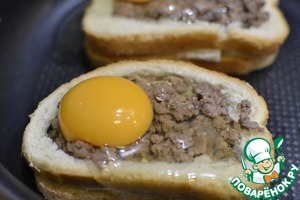 Предлагаю еще один вариант вкусного, очень сытного завтрака. Еще когда мы с подружкой учились в школе, ее мама делала горячие бутерброды с фаршем-это было мега-вкусно! Я немножко усложнила простой рецепт-получилось просто замечательно! Хрустящий хлебушек, нежный желток и сочный фарш- такой завтрак настраивает на чудесный день!