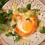 Выкладываем фарш внутрь бутерброда. Выкладывать нужно так, что бы было как можно меньше пространства между хлебушком и "рамкой", что бы потом яйцо не сильно вытекало. Разбиваем сверху яйцо, стараясь сохранить целым желток, слегка подсаливаем Даже если белок немного вытечет-ничего страшного. Отправляем в разогретую до 180 град духовку минут на 10, затем присыпаем раскрошенной брынзой или натертым сыром и отправляем в духовку минут на 5. Ориентируйтесь по своей духовке. Наша задача- что бы яйцо получилось " В мешочек".