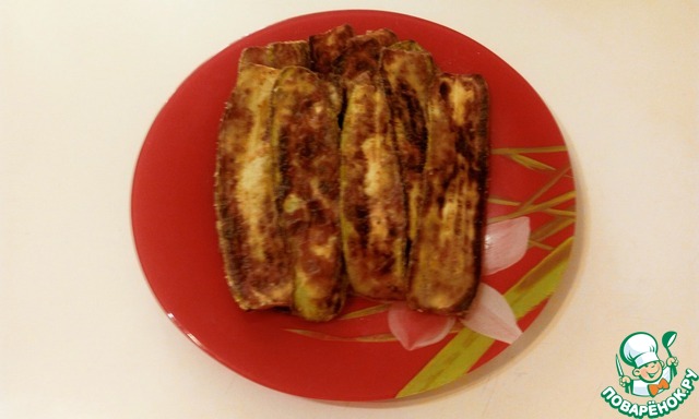 Пока варится рис, займемся кабачками. Кабачки помыть, нарезать пластинками вдоль. Я соль смешиваю с мукой и панирую в этой смеси кабачки. Я так и рыбу, и отбивные делаю. Только соли кладу меньше, чем если просто так солить. Таким способом соки остаются в продуктах. Вы можете делать по своему. На подсолнечном масле обжарить кабачки до готовности.