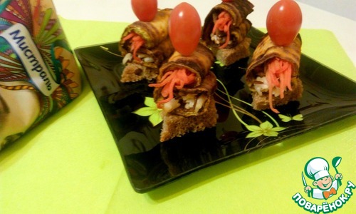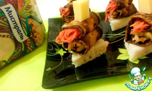Не постные рулетики подаем на белом хлебе и с сыром.