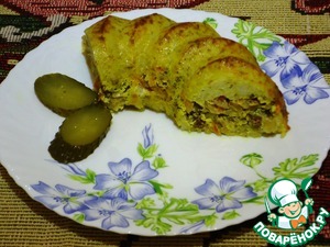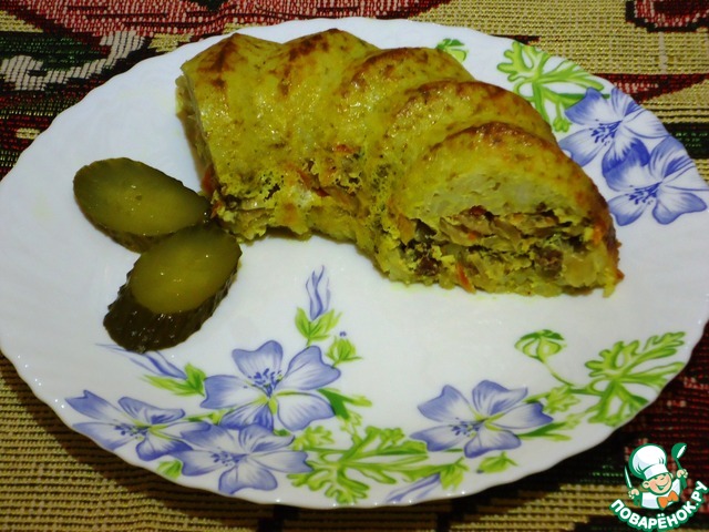 Прослойку можно сделать из фарша с капустой свежей с морковкой и луком, с грибами, с печенью куриной. Полет фантазии и творчества не ограничен. Всем приятного аппетита!