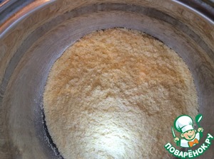 Хлопья всыпать в кастрюлю и залить 300 г кипятка.