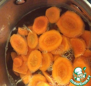 Воду довести до кипения, засыпать порезанную морковь и варить 5 минут. Откинуть на дуршлаг, дать стечь воде и немного обсохнуть моркови.