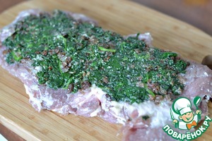 Рецепт «Мясной рулет со шпинатом и изюмом»: