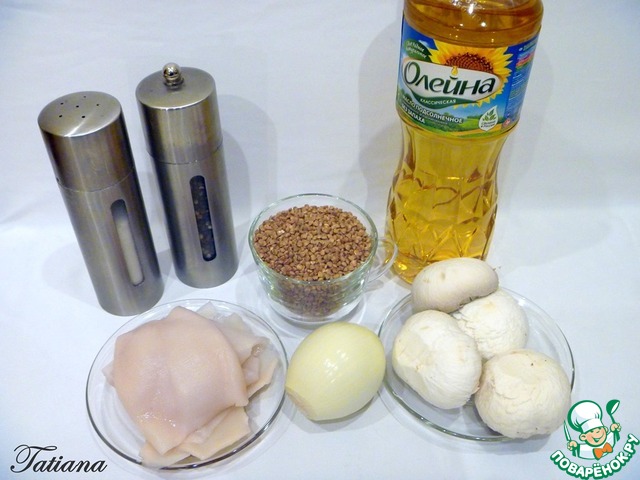 Ингредиенты для «Блинчики с гречкой, кальмарами и грибами»: