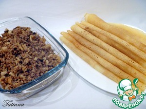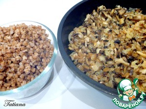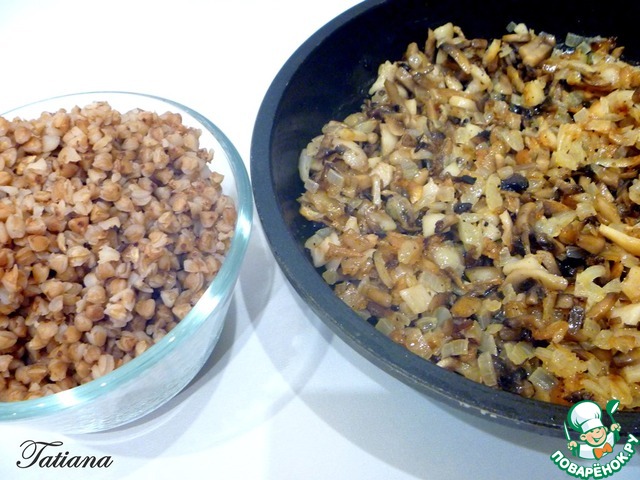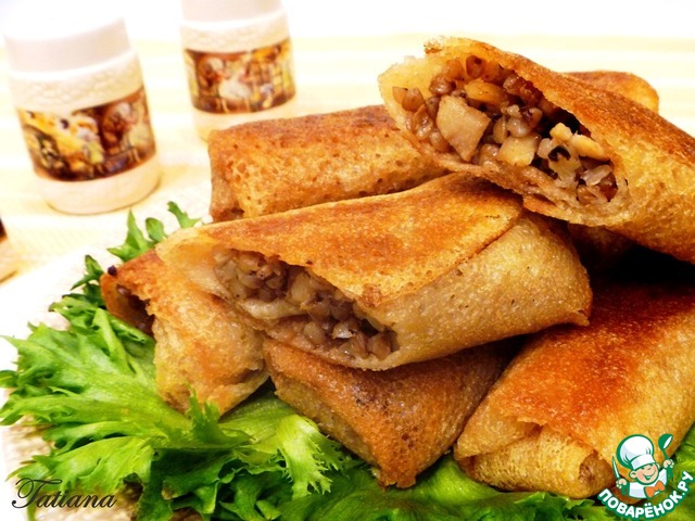 Рецепт «Блинчики с гречкой, кальмарами и грибами»: