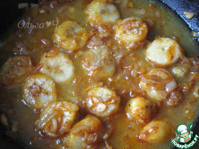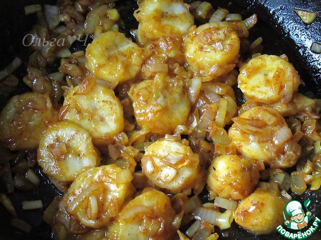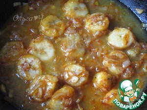 Добавить крупно нарезанный банан, томить до мягкости минут 5-8.
