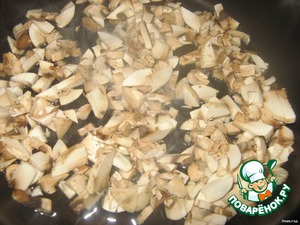 Шампиньоны нарезать, обжарить на растительном масле.