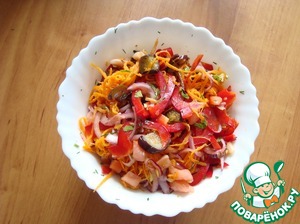 Соединяем все ингредиенты в салатнике, поперчив по желанию по вкусу.
