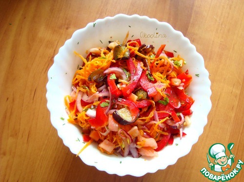 Перемешиваем, накрываем крышкой и отправляем в холодильник настояться минут на 15. Можно и сразу есть, но настоянный вкуснее.